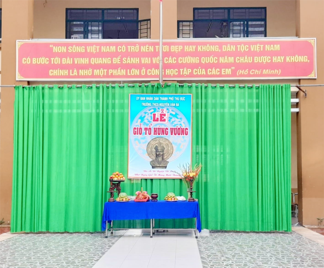 Sinh thời chủ tịch Hồ Chí Minh từng căn dặn "Các Vua Hùng đã có công dựng nước, Bác cháu ta phải cùng nhau giữ lấy nước”. Tiếp nối truyền thống tốt đẹp của dân tộc, hòa chung không khí vui tươi của ngày Giỗ tổ sáng ngày 26/04/2023, trường THCS Nguyễn Văn Bá long trọng tổ chức Lễ giỗ tổ Hùng Vương với sự hiện diện của tập thể cán bộ, giáo viên, công nhân viên cùng các đội viên - học sinh hai khối 6,7 của nhà trường.