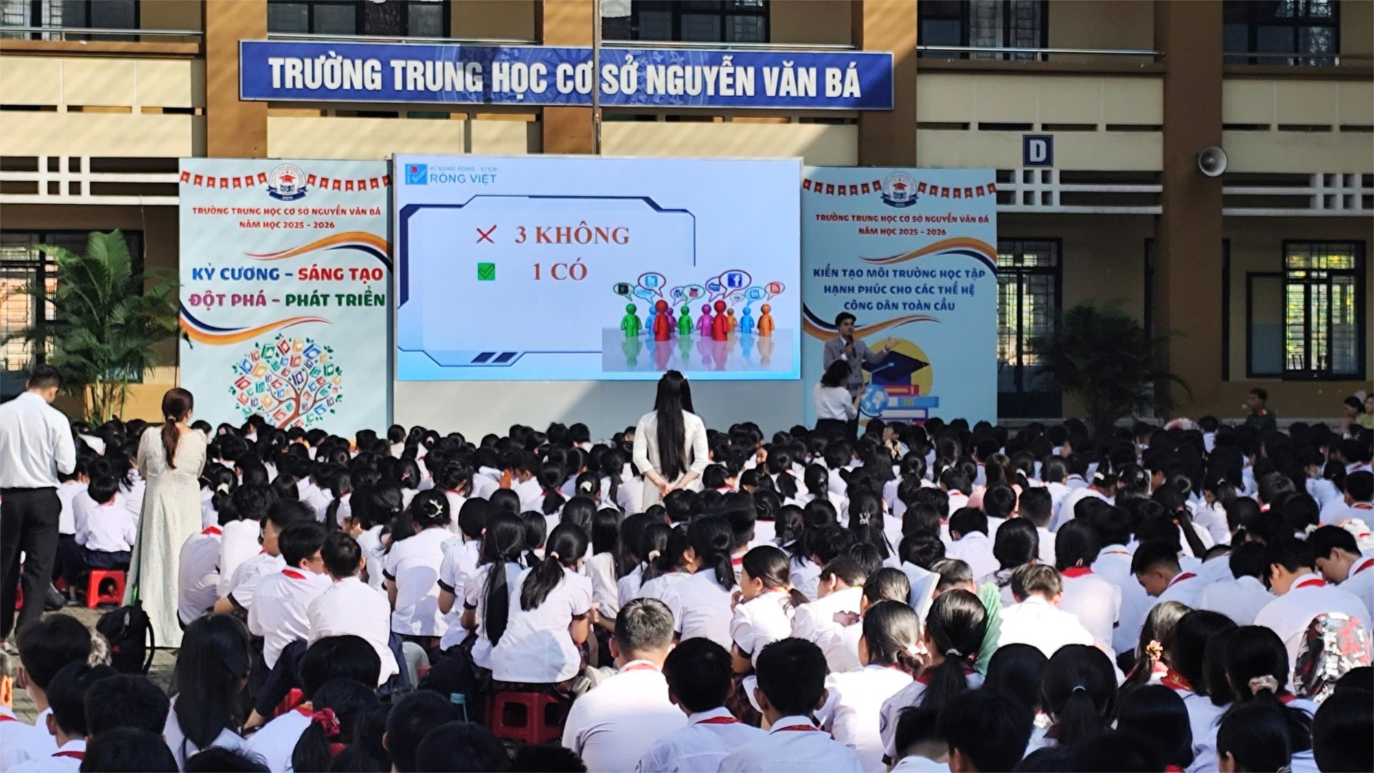Nhằm trang bị kiến thức và kỹ năng sử dụng Internet an toàn, hiệu quả cho học sinh, Trường THCS Nguyễn Văn Bá phối hợp cùng Trung tâm KNS Rồng Việt tổ chức chương trình "An toàn trên không gian mạng".