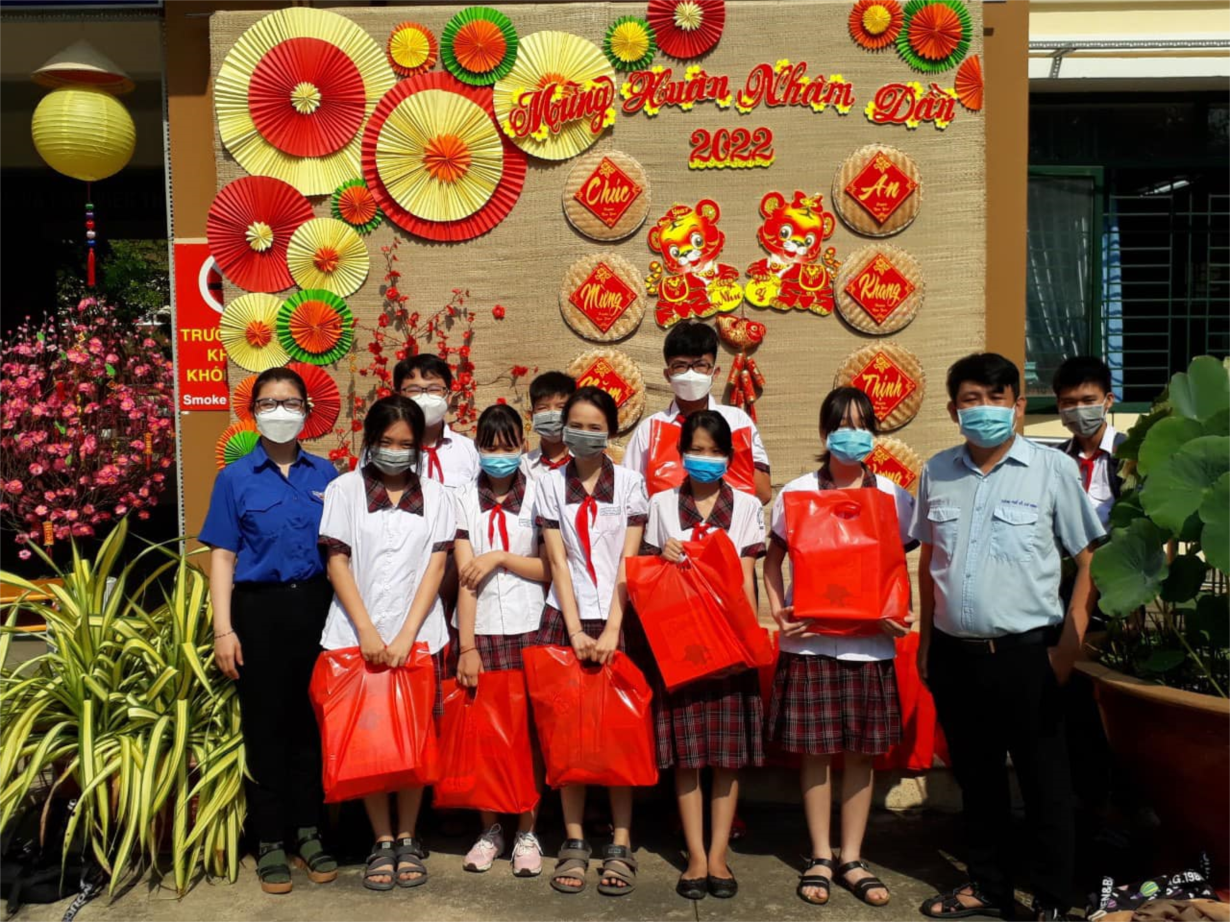 Tập thể nhà trường đã trao tặng 42 phần quà cho 42 học sinh có hoàn cảnh khó khăn vui đón Tết nhằm thể hiện tinh thần tương thân tương ái, hỗ trợ các em có thêm món quà nhỏ mùa Tết.